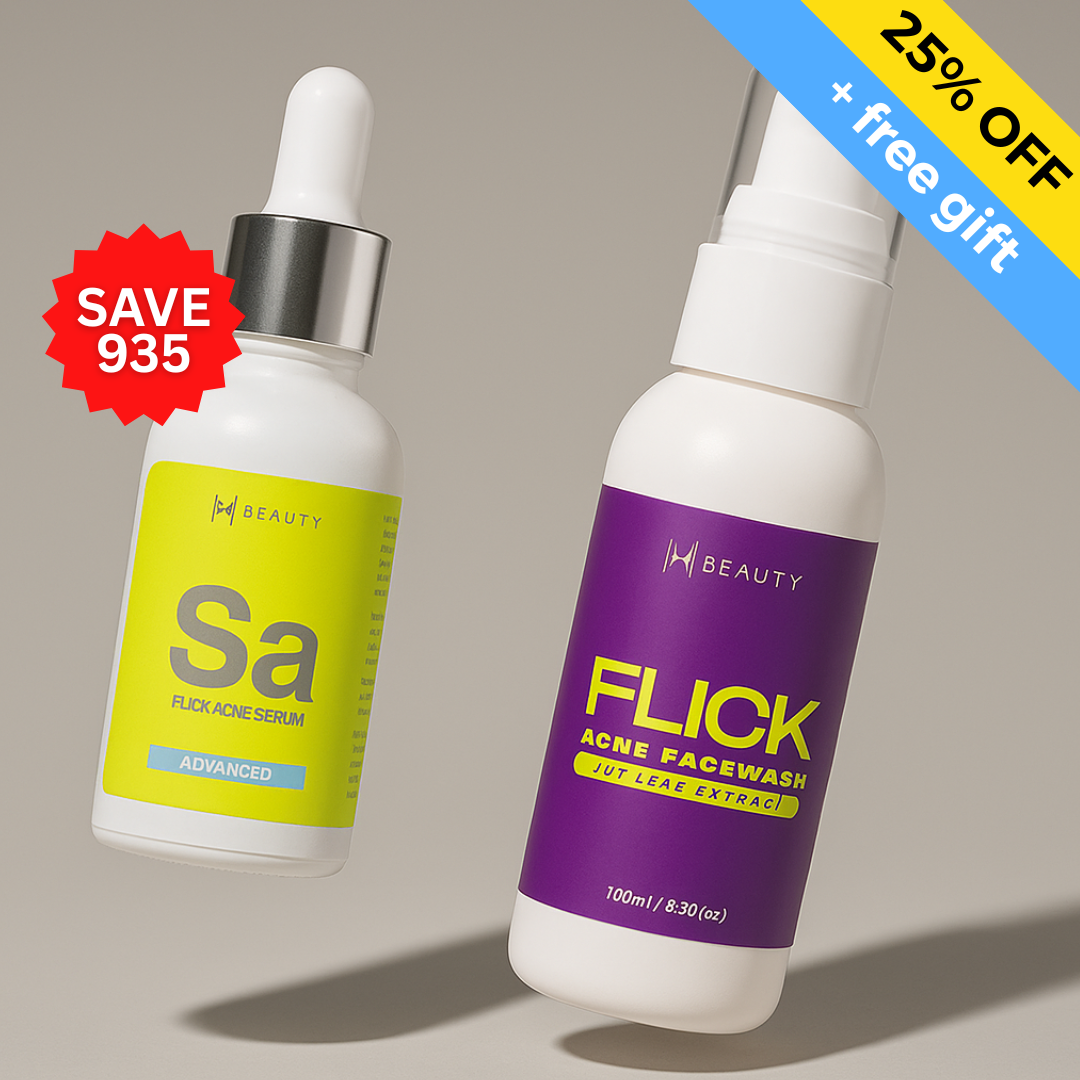 If you are struggling with acne, breakouts, comedones & blackheads, then this duo is the right choice for you. Featuring Flick Acne Facewash and 2% Salicylic Acid Serum. This powerful pair helps unclog pores, reduce redness, control excess oil, and prevent new breakouts, leaving skin clearer, smoother, and balanced. Perfect for uneven, acne-prone, dry, or dull skin.