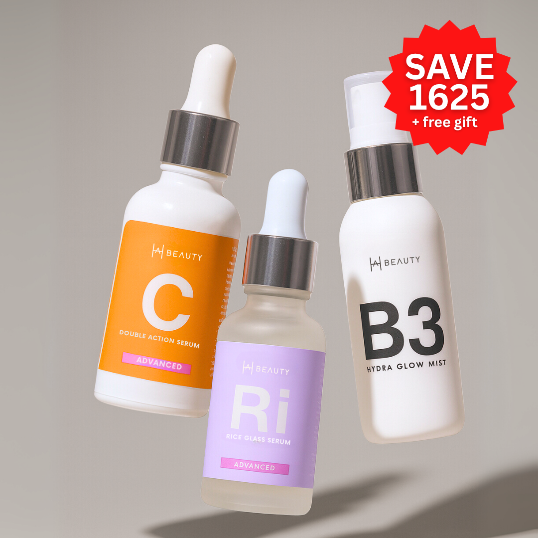 Refresh. Brighten. Glow. This powerhouse trio — B3 Hydra Glow Mist, Rice Glass Serum, and Double Action Vitamin C Serum — works together to deeply hydrate, fade dark spots, and leave your skin dewy, even-toned, and radiant all day.