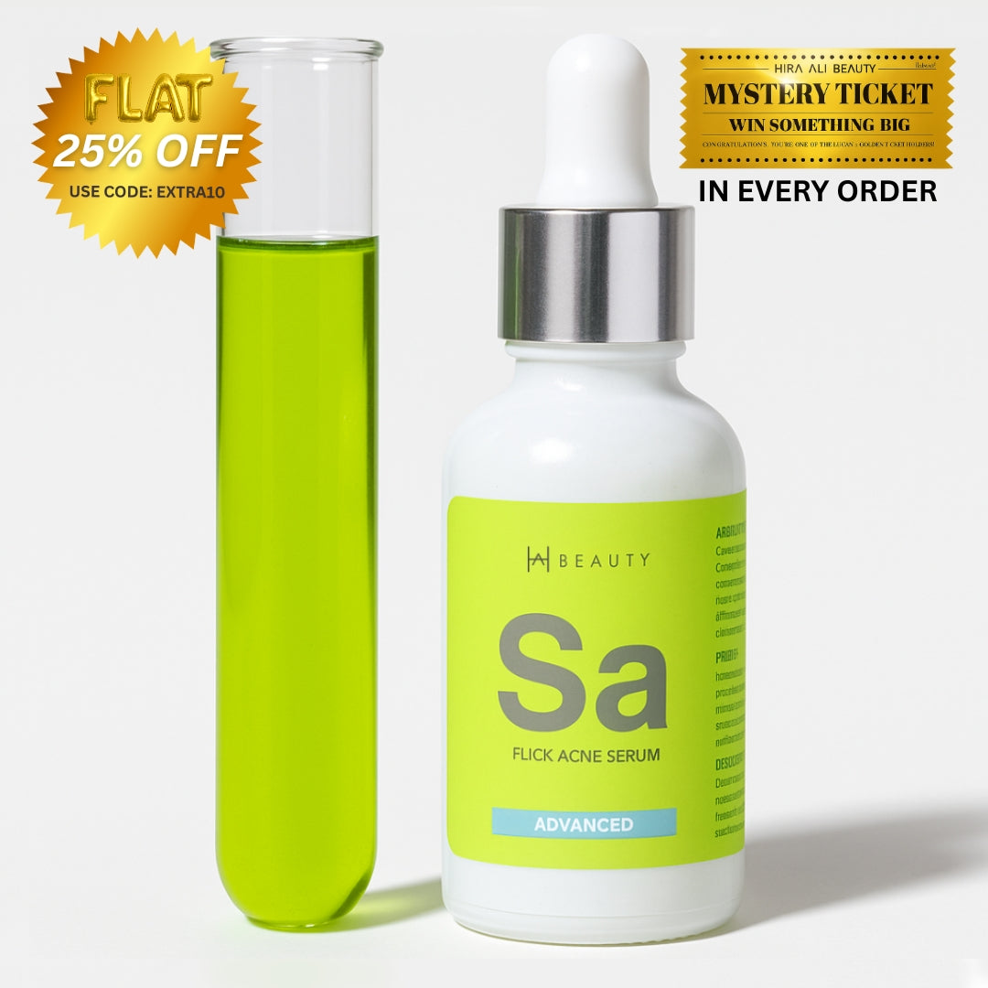 Say goodbye to breakouts and congestion with Flick Acne Serum, your daily exfoliating solution powered by 2% Salicylic Acid and 5% Ivy Leaf Extract. This lightweight, pore-purifying formula gently clears away dead skin cells, excess oil, and impurities to reveal fresh, clarified skin beneath.