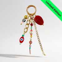 Ground your style and protect your vibe with the  Terra Bag Charm, a chic accessory that blends earthy stones, bold red tones, and the iconic evil eye for a look that’s both stylish and symbolic.