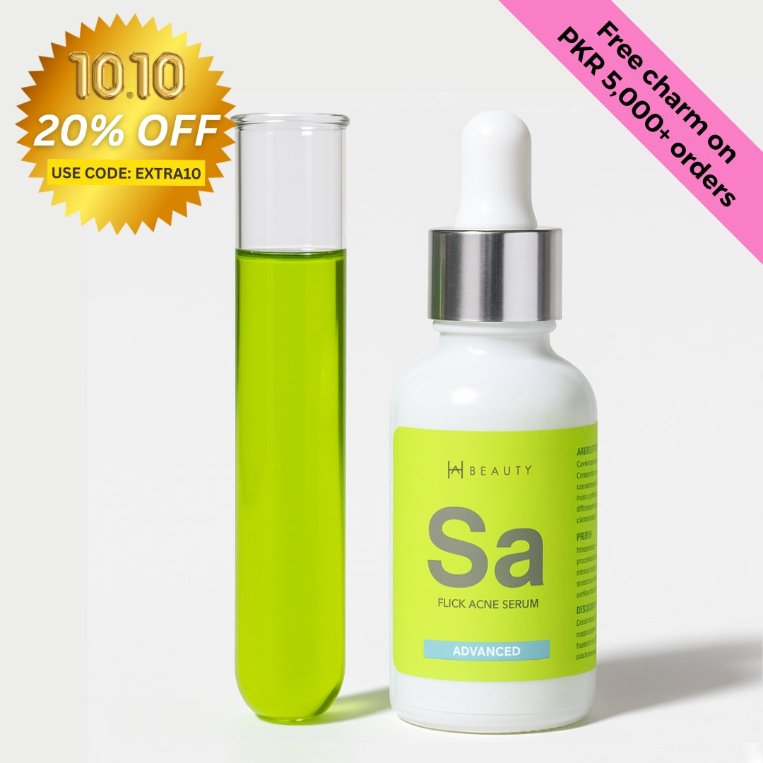 Say goodbye to breakouts and congestion with Flick Acne Serum, your daily exfoliating solution powered by 2% Salicylic Acid and 5% Ivy Leaf Extract. This lightweight, pore-purifying formula gently clears away dead skin cells, excess oil, and impurities to reveal fresh, clarified skin beneath.